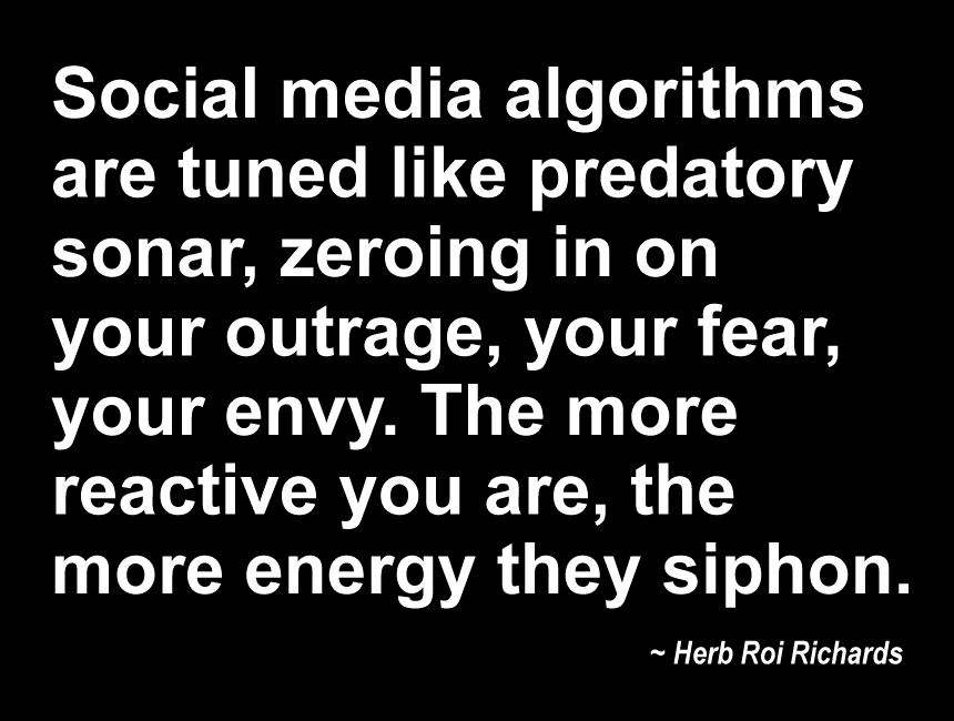 You ever notice how exhausted you feel after scrolling your feed for 20 minutes? That’s not by accident. Your energy is being harvested. Social media algorithms are tuned like predatory sonar, zeroing in on your outrage, your fear, your envy. The more reactive you are, the more energy they siphon. And don’t even get me started on the junk food, pharma meds, and late-night news blather. All of it is designed to keep you vibrating low, foggy-brained, and susceptible to manipulation.